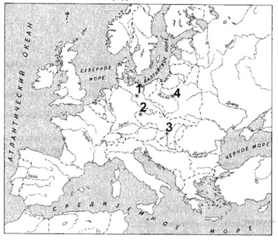 Попытка государственного переворота во главе с В. Каппом произошла в 1920 г. в европейской столице, обозначенной на карте точкой с цифрой: