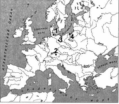Ноябрьская (1918) революция в Германии началась с восстания в городе, обозначенном на карте точкой с цифрой: