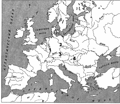 Встреча американских и советских войск в апреле 1945 г. произошла в районе, обозначенном на карте цифрой: