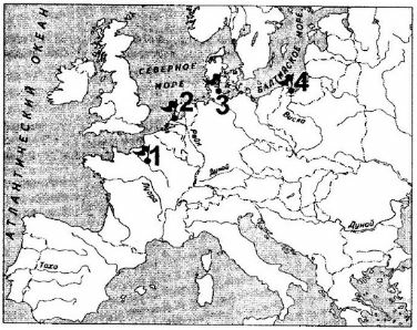 Город, который по условиям Версальского мирного договора 1919 г. получил статус вольного города, обозначен на карте точкой с цифрой: