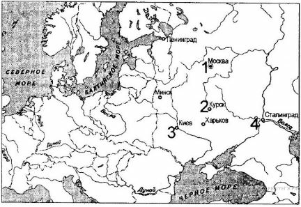 Одно из крупнейших танковых сражений Второй мировой войны произошло в июле 1943 г. возле населенного пункта, обозначенного на карте цифрой: