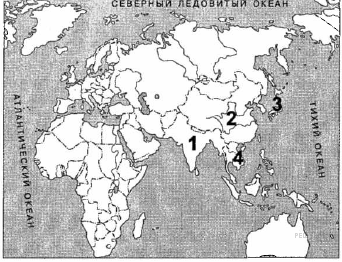 Территория государства, в котором в 1919 г. началось «движение 4 мая», обозначена на карте цифрой: