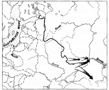 Целью наступления германских войск, схема которого представлена на карте, был(-о; -а) (границы указаны на август 1939 г.):