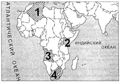 В 1975 г. добилась независимости колония Португалии, территория которой обозначена на карте цифрой: