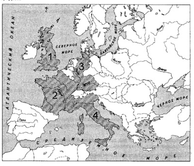 К числу высокоразвитых капиталистических стран относится государство, территория которого обозначена на карте цифрой: